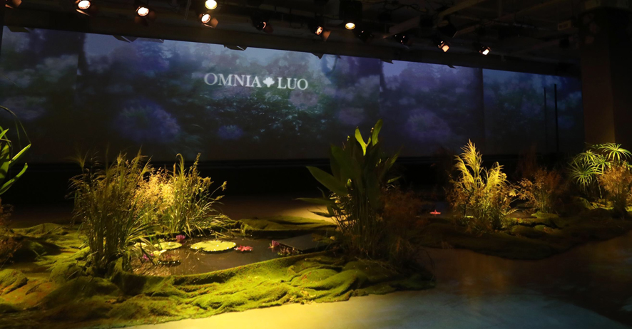 现场手碟演奏拉开了欧柏兰奴2019春夏新品发布会的序幕。氤氲的气氛包围着全场,3D高科技全息投影效果,让人身临其境的进入到的花之秘境的世界。