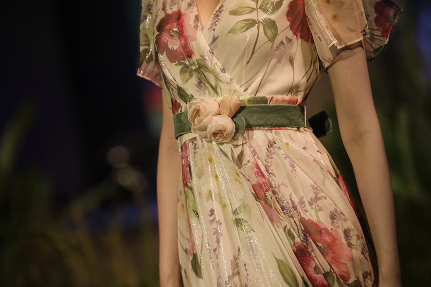 多元印花结合不同质感、不同设计工艺的优质面料,意在表现hth华体育app官网登录(中国)官方网站意境之美。本次设计飘逸柔美,却加入了大量西式立裁和女性魅力的点缀细节,更多展现的是一种现代女性最本真的内在美,浪漫而富有想象力。